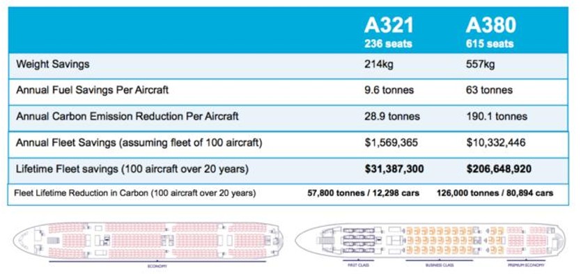 Autodesk and Aristo Cast claim that if an aircraft maker such as Airbus were to replace all 615 seats on its A380 jets with the new, lighter magnesium seat frames -- across a fleet of 100 planes which typically have a 20-year lifespan -- the move would save $206 million, based on average jet fuel costs in 2015. Along with reducing fuel costs, the new seats could also mean 126,000 fewer tons of C02 emissions if used on a single model aircraft.
