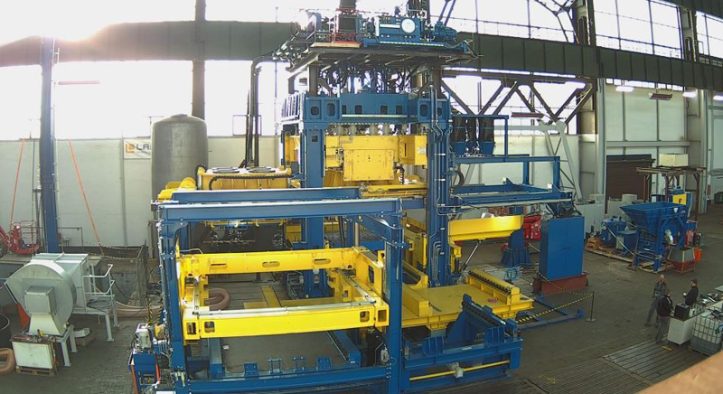 The machine is so big that we had to move to the huge, historic halls of SKET GmbH in Magdeburg to set it up for the test run, Laempe team leader Henri Ackmann tells us proudly.