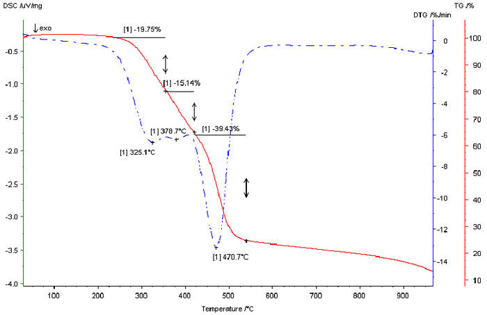 ![]() Figure 2. TG / DTG curve illustrating the behavior of phenolic resin subject to the same test conditions of the VPU resin. |