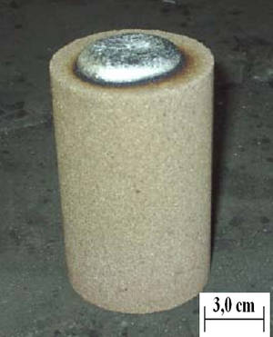 ![]() Figure 5 Digital image of sand mold from composition with incorporation of inorganic material submitted to the aluminum fusion. |