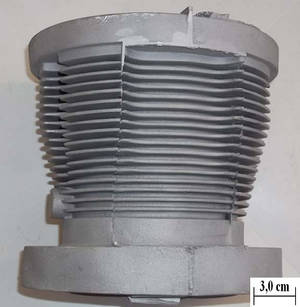 ![]() Figure 8. Aluminum cast at Funcred -Aluminum Foundry (São Carlos – Brazil). | ![]() Figure 10 White iron (2.0%w.t. Ni) cast at Ferrusi - Casting Industrial Ltda. (Sertãozinho – Brazil). |