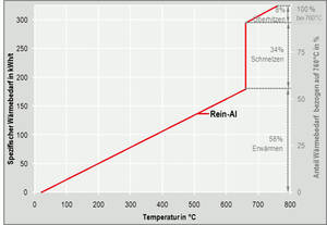 <link file:7504>![]() Figure 1 Specific heat content of NF alloys | <link file:7505>![]() Figure 2 Heat requirement for heating up, melting and superheating pure aluminium |