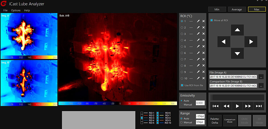 So also in this case the qualitative aspect of the castings must be considered the primary driver for any process optimization path. We therefore defined together an adequate number of products on which to carry out the tests and applied our optimization methodology, which involves the analysis of the thermal mapping of the die surfaces using the iCast Lube Analyzer software. On the basis of these analyses, we selected a lubricant for minimal application among the water-based ready-to-use and water-free ones and carried out the test campaign.