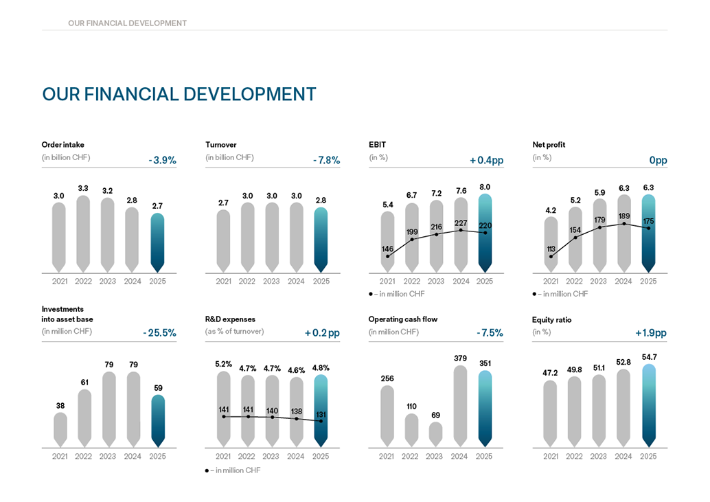 Bühler has once again reinforced its commitment to targeted innovations that improve both performance and sustainability. Research and development expenditure in 2025 amounted to CHF 131 million, representing 4.8% of sales (previous year: 4.6%). The company launched around 60 new products during the year.