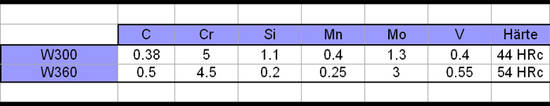 Tabelle 1: Nominelle chemische Zusammensetzung und Vergütehärte der verwendeten Warmarbeitsstähle |