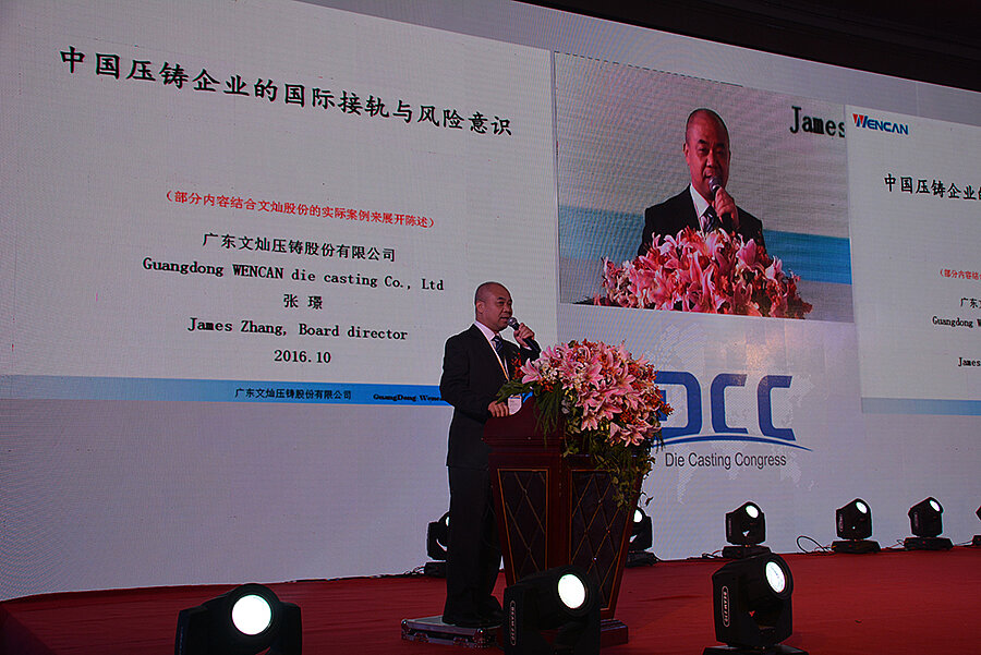 Mr. James Zhang from Guangdong WENCAN Die Casting Co.,Ltd. gave a presentation on International Connection for China's Die Casting Enterprises and Its Risk.