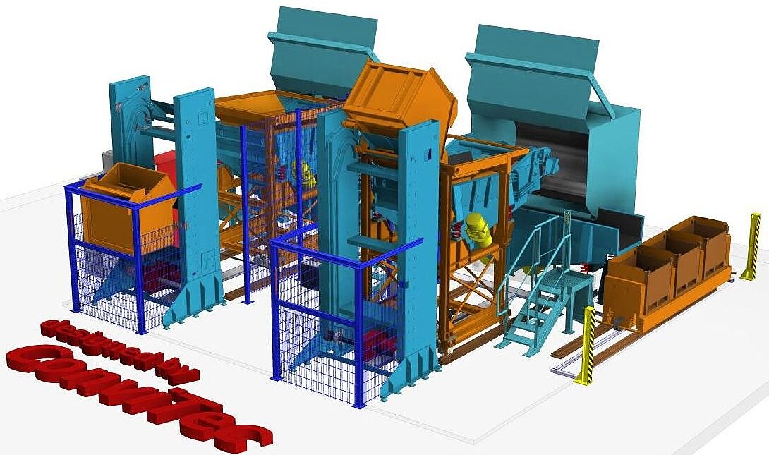 For a German customer, ConviTec projected, delivered, installed, and commissioned a fully automatic feeding and conveyor system with weighing device for two belt shot blast machines and a container station for transport boxes that are filled fully automatically.