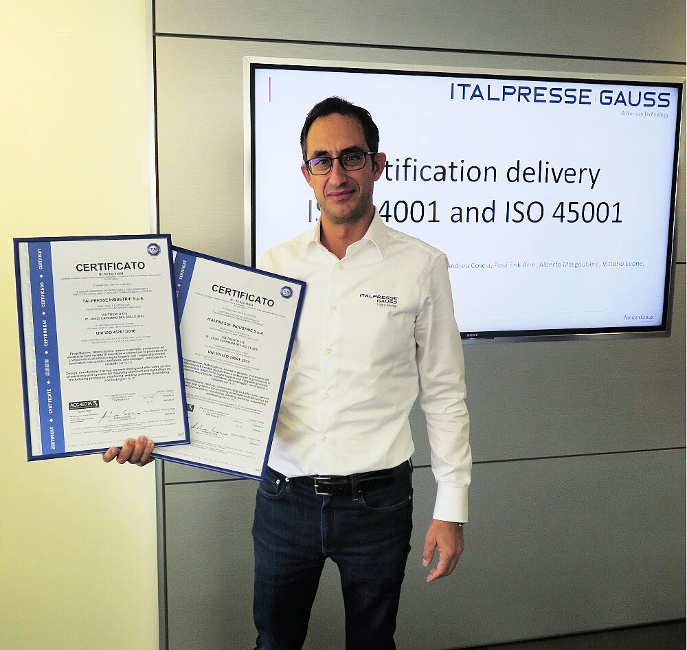 In addition to the renewal of its ISO 9001:2015 certification, a dedicated team composed by Italpresse Gauss’ Lean & Quality, Operations, Environmental & Health & Safety, and technical documentation specialists, worked hard over the past months to ensure a company-wide Integrated Management System, unifying all three areas in order to unlock even more Value to Customers under the latest standards ISO 14001 and ISO 45001 which are recognized as the leading and most widely international used in these specific areas.