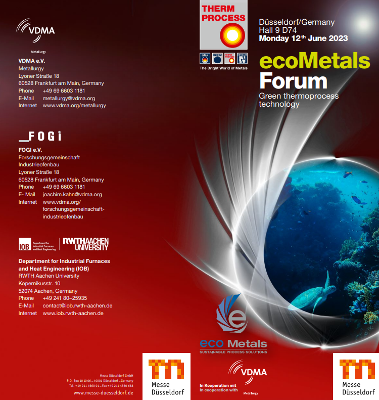 VDMA Metallurgy is the partner of THERMPROCESS. Together with the Research Association for Industrial Furnace Engineering FOGI, it organizes the Ecometals Forum and the Thermprocess Forum 2023.