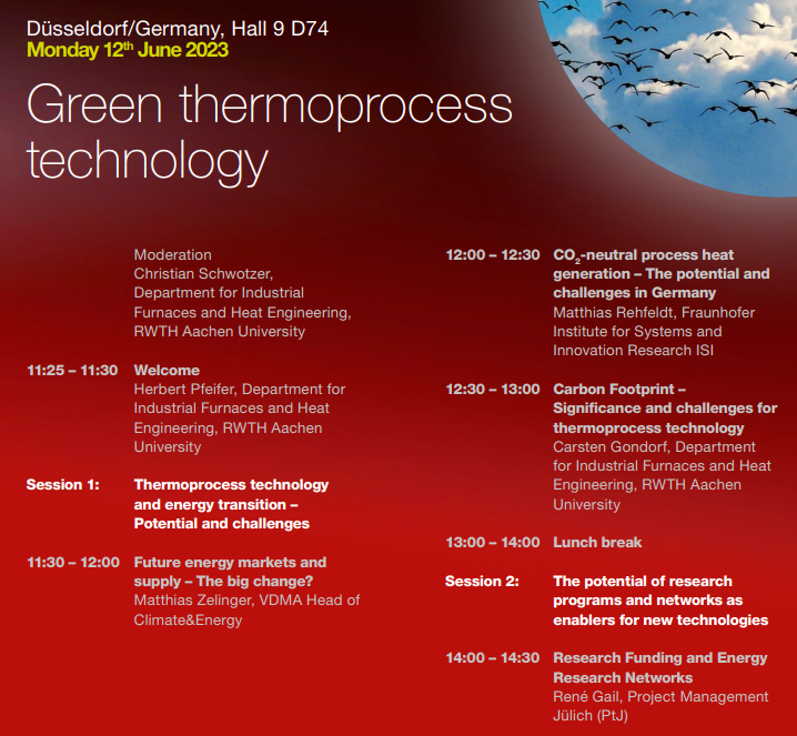 The event will be moderated by the “Department for Industrial Furnaces and Heat Engineering (IOB) at RWTH Aachen University”. Up-to-date information on the event can be found at www.thermprocess.de or at https://www.vdma.org/metallurgy.