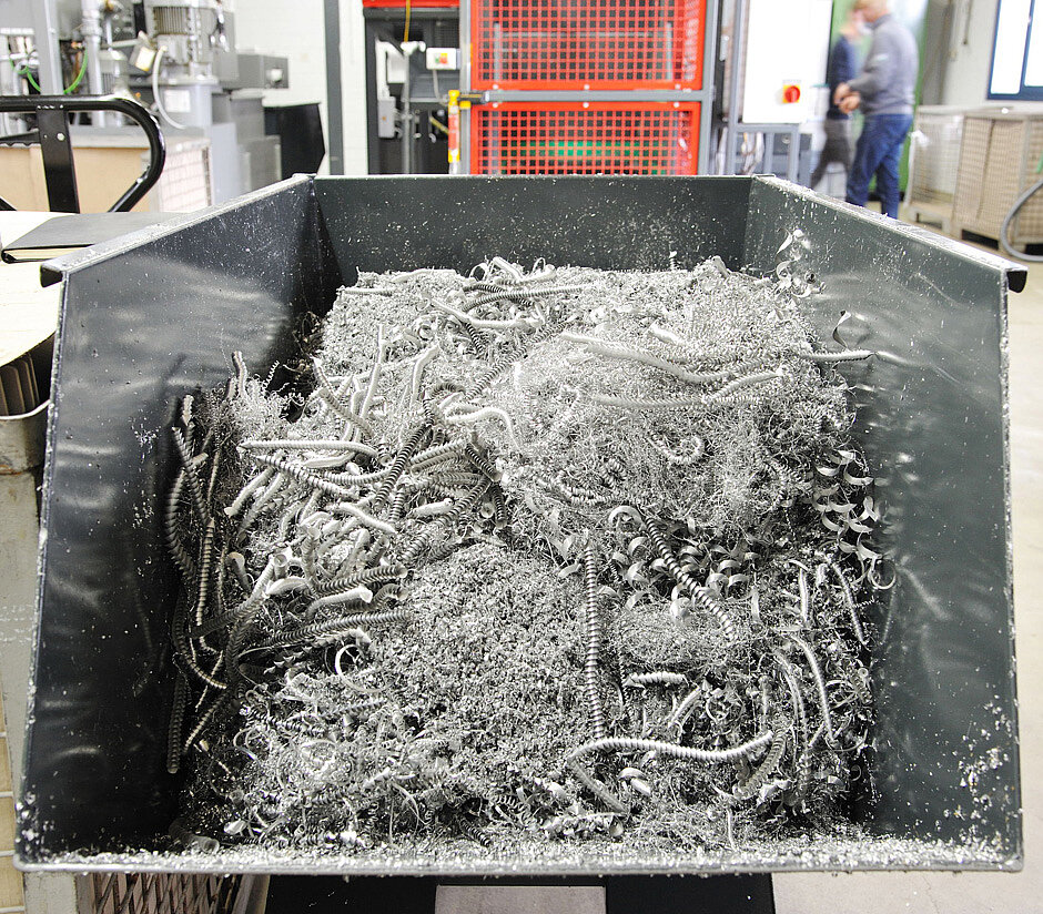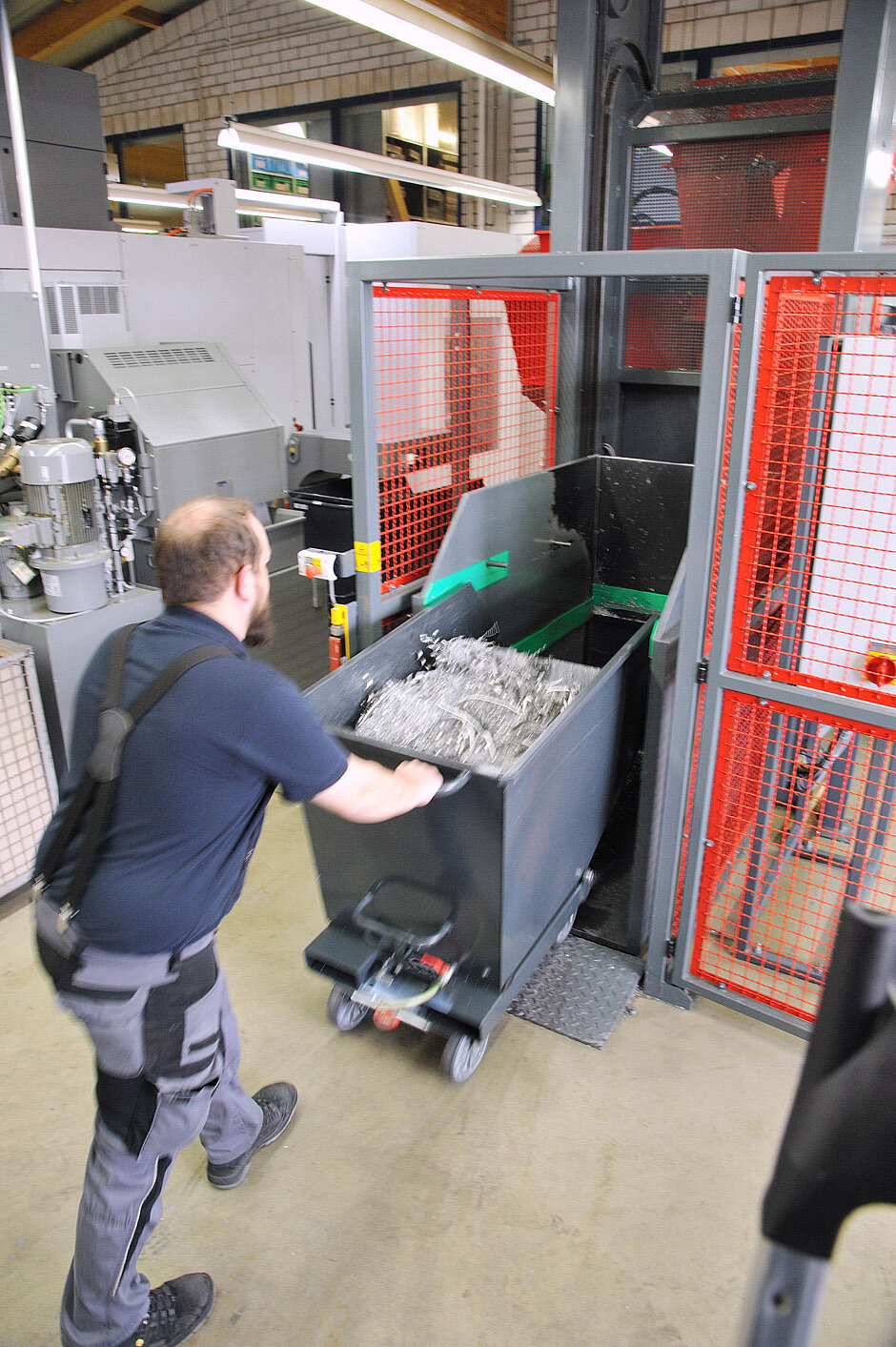 Handling chips consumes a significant amount of time and resources. They have an extremely high bulk volume, requiring a lot of space. Transporting them to collection containers and manually filling them is time-consuming. When they are coated with cutting fluid, they often contaminate production areas during transport and storage. Furthermore, wet chips yield reduced returns because logistics are complex, and chip processing before melting incurs additional costs, including the separation of cutting fluids, which then need to be disposed of.