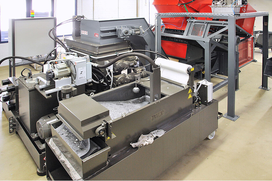 The managing directors were pleasantly surprised by the smooth commissioning of the complete system. In fact, it consists of machines and components from several manufacturers: the RUF press, lifting/tilting equipment, and shredder from Erdwich, and the filter system from Polo. "We hardly noticed that we were dealing with different suppliers," praises Leonard Euler the good coordination and collaboration between the companies. "From day one, the cooperation with Mr. Lorbach worked very well; he coordinated everything, and we didn't have to worry about coordination between the involved companies," emphasizes the company's CEO. Ralf Lorbach explains: "We coordinate among ourselves, make suggestions to the customer, such as for control system integration, and finally, technicians from the involved companies jointly assemble the system at the customer's site." This brings clear advantages to the users, as Leonard Euler reports: "The entire system is interconnected without potential differences, meaning that, for example, when the coolant tank of the filter system is full, a sensor on the coolant tank signals this. This signal stops the filter system and informs the press, the shredder, and the lifting-tilting device, causing the entire system to stop and switch to standby mode. Once the coolant tank has been emptied, a button press is sufficient to restart the entire process. This provides a coherent integration." As reliable as the integration, the RUF press itself operates. "Low maintenance effort, no unplanned downtime – we are absolutely satisfied with the machine," summarizes Leonard Euler.