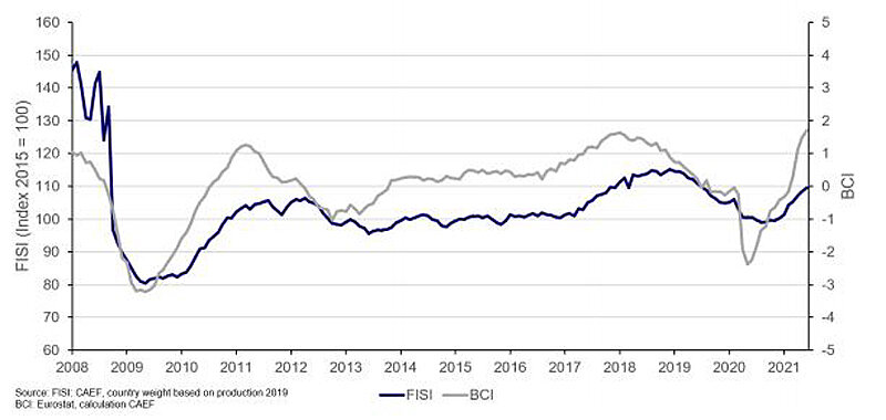 The FISI – European Foundry Industry Sentiment Indicator – is the earliest available composite indicator providing information on the European foundry industry performance. It is published by CAEF the European Foundry Association every month and is based on survey responses of the European foundry industry. The CAEF members are asked to give their assessment of the current business situation in the foundry sector and their expectations for the next six months.