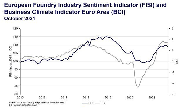 Continuing problems in the global supply chains and the related problems in the automotive industry in particular threaten to limit the recovery of the foundry industry and do not bode well for the first quarter of 2022. Meanwhile, the horrendous costs for raw materials and energy are causing tremendous difficulties in economic production for the energy-intensive foundry industry at the beginning of winter.