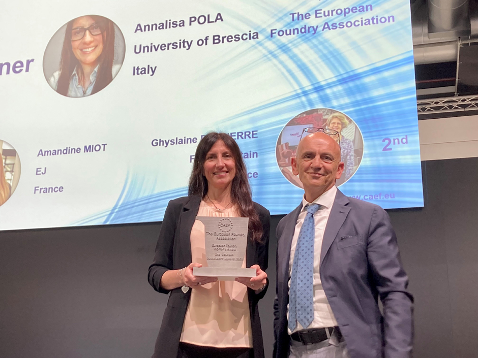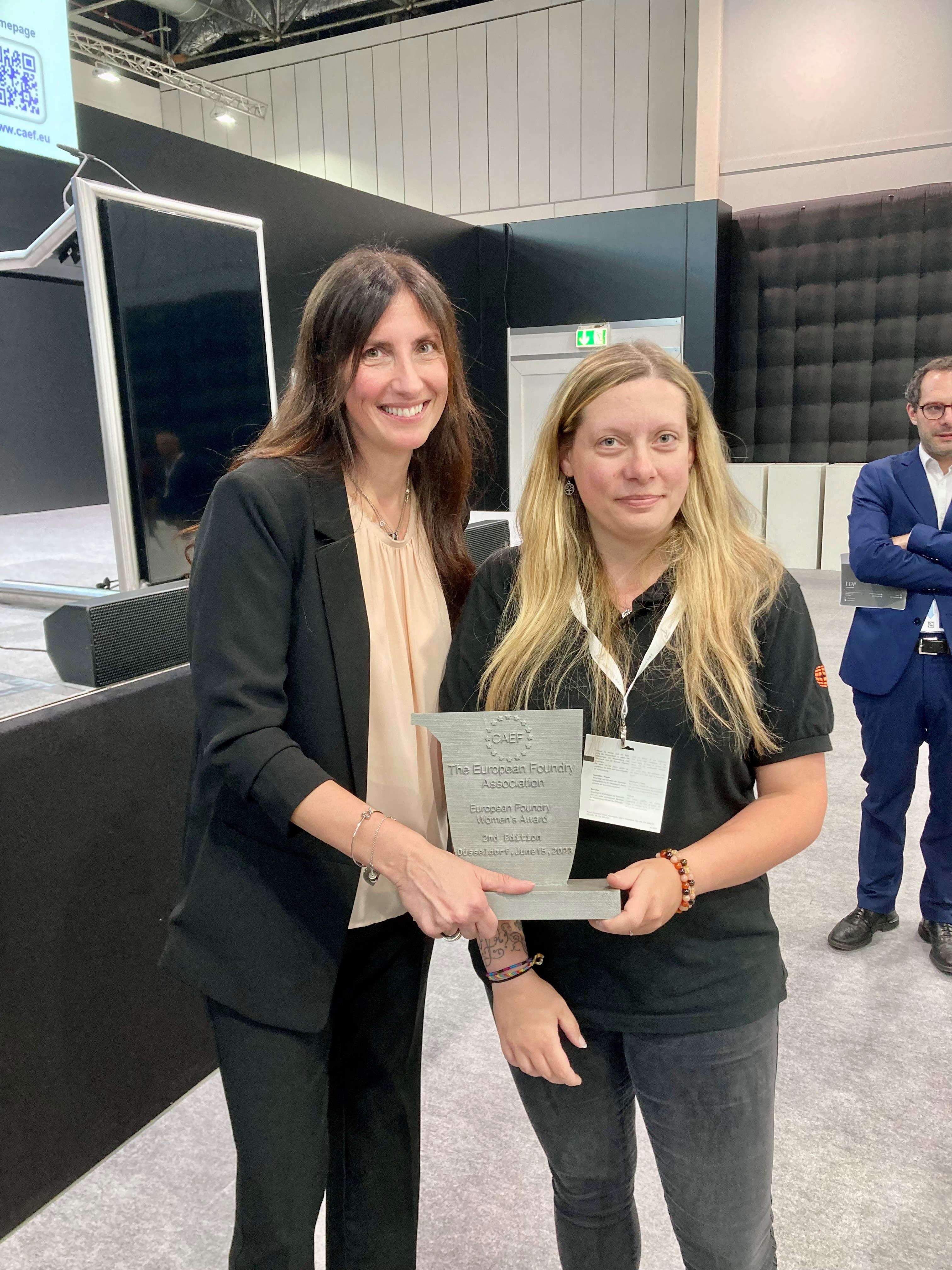 The European Foundry Women`s Award 2023 was awarded this year by the jury of CAEF (The European Foundry Association) to Italian professor Annalisa Pola, followed by Amandine Miot of EJ France in 2nd place and Ghyslaine Delpierre, Ferry-Capitain France in 3rd place. During GIFA and Newcast in Düsseldorf in June, the award was presented in a fitting ceremony by Assofond President and CAEF member Roberto Ariotti.