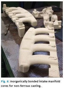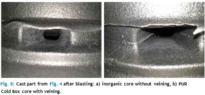 If particularly dry air is used, curing can be achieved at lower temperatures. The binder system can of course also be used in the warm or hot box process. The fact that veining only occurs in exceptional cases with the inorganically bonded cores is certainly a welcome advantage in the fettling shop.