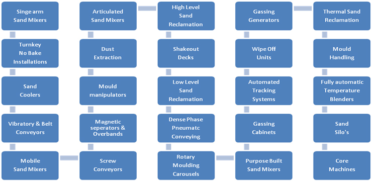 Foundry Machinery has the capability to supply the exclusive range of spares and equipment that were formerly offered by Award Manufacturing Ltd (AML LTD) and Integrated Sand Systems Ltd (ISS LTD) which then went on to become Award Integrated Sand Systems Ltd (AISS LTD).