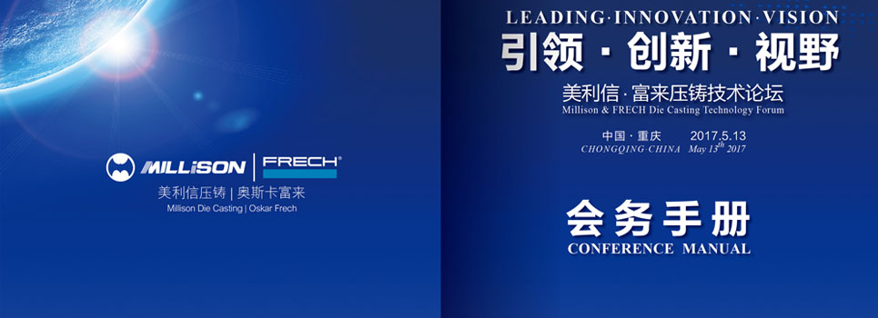 In order to explore the advanced and creative die casting technology, MILLISON Die Casting and OSKAR FRECH will hold a die casting technology forum “Leading – Innovation – Vision” on May 13th in Chongqing, China. The event will have international die casting experts sitting together with you to attend this forum, which will bring a new experience and insight to you!