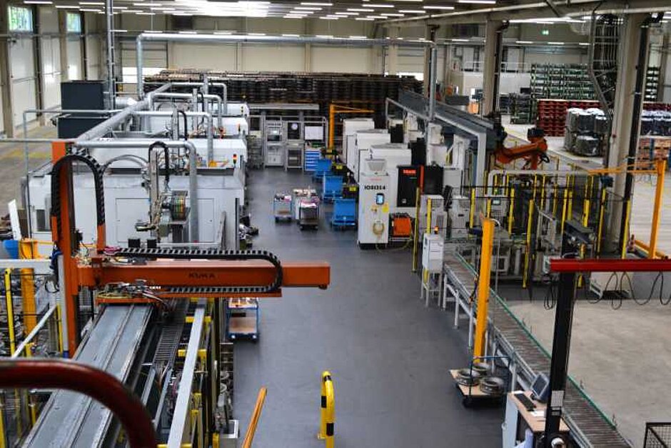 The fully automated line includes unmanned loading with an integrated Poka Yoke, supported by a camera visualization. Poka Yoke is a Japanese term for systematic error detection and avoidance. The core of the production line is made up of four lathes, a dynamically testing measuring unit, needle embossers to ensure traceability and three drilling systems with subsequent tactile robot measurements to identify the machining features. These systems are linked via various handling devices and robots.