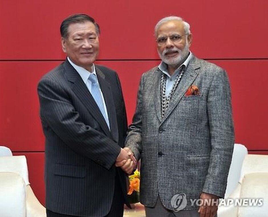 Group officials said Chung exchanged views with Prime Minister Modi on ways to boost cooperation in the automotive industries of the two countries.
