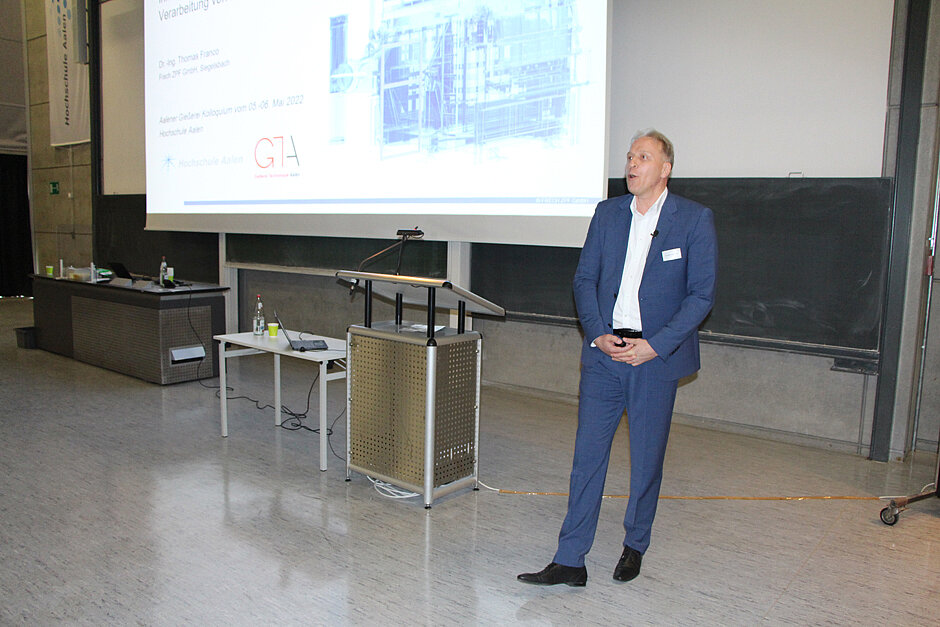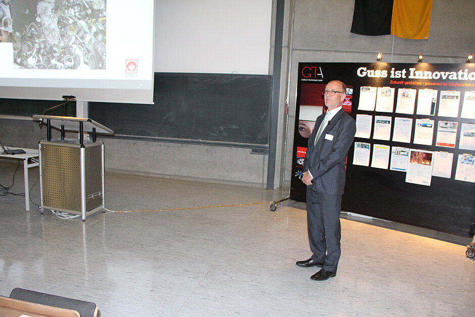 The subject of "Process optimization, management and logistics in foundries" was the topic of the presentation by Prof. Dr.-Ing. Sven Roeren of roeren Gmbh. He discussed a naïve run into e-mobility and warned against misconceptions regarding niche markets. "Niches are volatile, can crumble, and only pay off with high returns." He also criticized companies for allowing themselves to be forced into prices they would be better off not accepting. His final appeal to the audience was to recognize their own competencies and find the market that goes with them.
