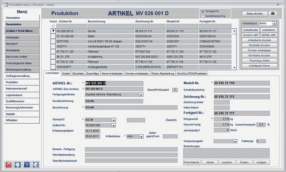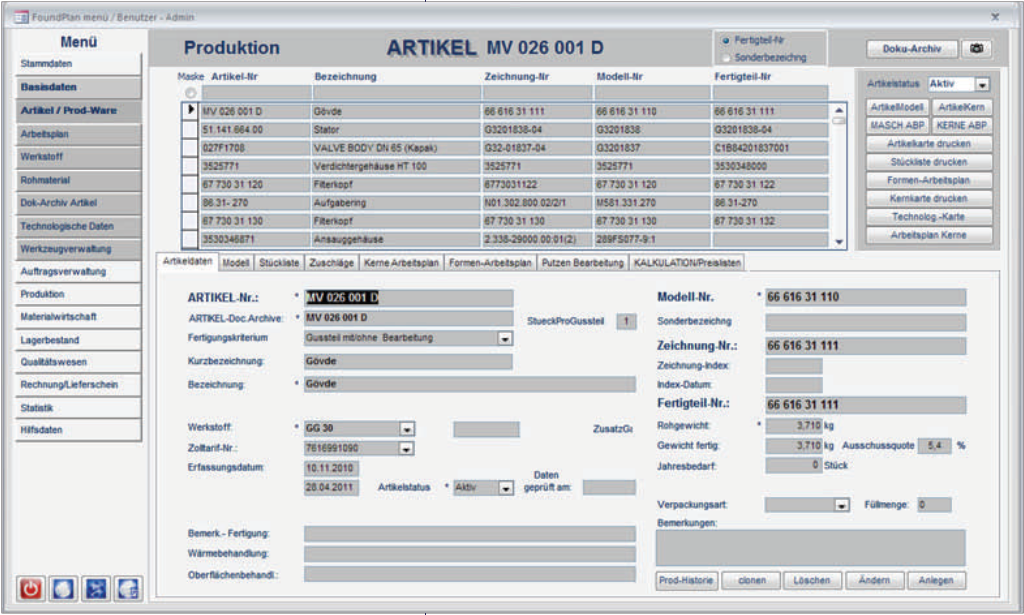 FoundPlan was introduced at Harzer Werke Motorentechnik GmbH in Blankenburg for the manufacture of cylinder liners for diesel engines using centrifugal casting.