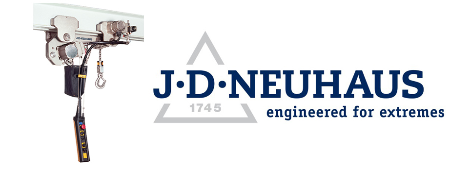 Selected models from the J D Neuhaus range of air operated hoists and trolleys are now available for clean room operations and other specialist applications that also require hygienic working conditions. These include chemical and pharmaceutical production establishments, together with the food and drink industries covering all aspects of both handling and manufacture.