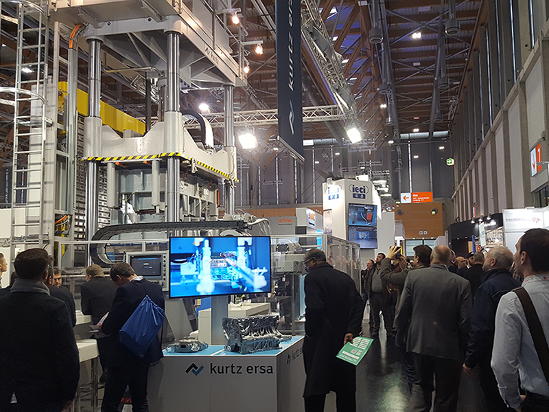 The Kurtz trade fair team led by Managing Director Uwe Rothaug and Lothar Hartmann, Head of Profit Centre Foundry Machines, drew a positive balance for the EUROGUSS 2018, which enabled numerous qualified contacts to existing customers and potential new customers. “With the completely revised hydraulic concept (increased output with reduced energy consumption), low-noise rotary drive with high torque and a user-friendly wizard tool change, our new trimming press determines the cycle time in the die casting cell. Our high-speed press guarantees an extremely efficient production of aluminium die cast parts with maximum availability. We were able to convince numerous customers and interested parties of this, doubtless producing exciting projects in the near future,” said Lothar Hartmann at the end of the trade fair.