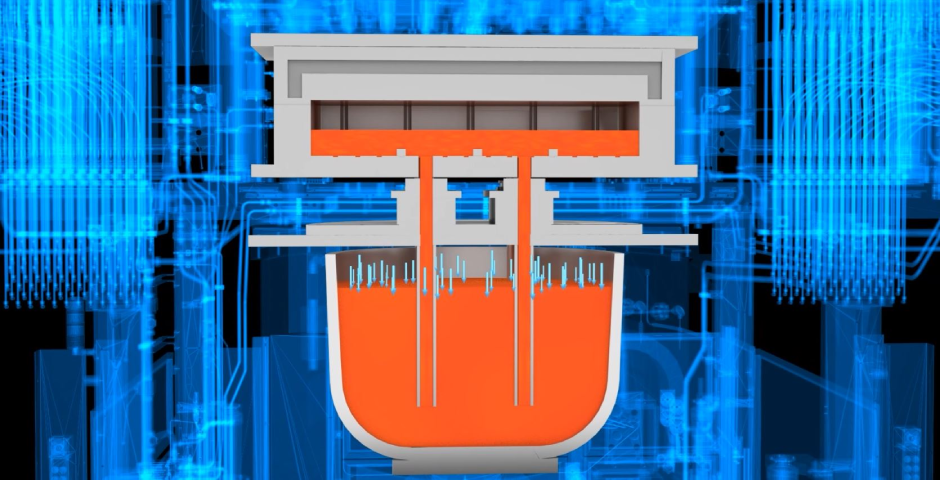 The filling of the furnaces and subsequent the melt treatment in the furnace takes place outside of the casting machine using an exchange furnace concept which reduces the machine downtime to a minimum and benefits the overall equipment effectiveness (OEE). The preferred solution of "in-line" filling from the melting furnace directly into the crucible furnace (casting furnace) significantly reduces internal forklift traffic. In addition, the melt temperature in the "in-line" melting furnace can be reduced by up to 40°C, as no further intermediate transport is required. This has a positive effect on energy savings. After the filling process, the melt is treated directly in the crucible furnace - which is also the casting furnace. This achieves the best melting quality. Closing the crucible furnace with the riser tube cover not only ensures that the processed melt is under a kind of protective atmosphere, but at the same time saves energy costs.