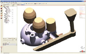 ![]() | The screenshot of MAGMA5 shows the cast component’s geometry from which mold and cores can be derived. Geometry data are available through easy transfer via standard interfaces, direct interfaces for CATIA and Pro/E or geometry construction in MAGMA5. |
