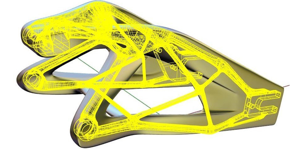 The first step was to optimize the traditional design of the rear swing arm using a generative design – Figure 2 – which served as a basis for the final swing arm design of the Mobinext scooter – Figure 3.