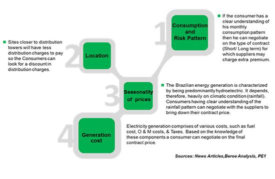 Electricity Consumers in Brazil can negotiate with suppliers on their electricity contract price based on their knowledge of certain parameters of the industry. A clear understanding of their consumption pattern and knowledge about the supplier’s generation mix can give consumers an upper hand over suppliers during the final negotiation of contract prices.