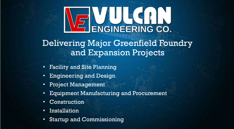 Well, it doesn't get much bigger than greenfield foundry and expansion projects. As proven in projects such as the expansion of Lodge Manufacturing Co. in Tennessee and the greenfield/brownfield foundry projects throughout Mexico, Vulcan has the ability to take on all aspects of large scale foundry projects, including project management, design, construction and installation in the U.S. and abroad.