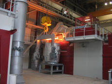 The induction furnace plant consists of two crucible furnaces with a useful capacity of 25,000 kg and a converter with 15,000 kW.