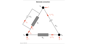 The Steinmetz connection is the switchgear commonly used for operating an inductor. It always consists of a phase balancing system which symmetrically distributes the two-phase load to the three-phase network and the power factor correction of the inductive inductor coil.