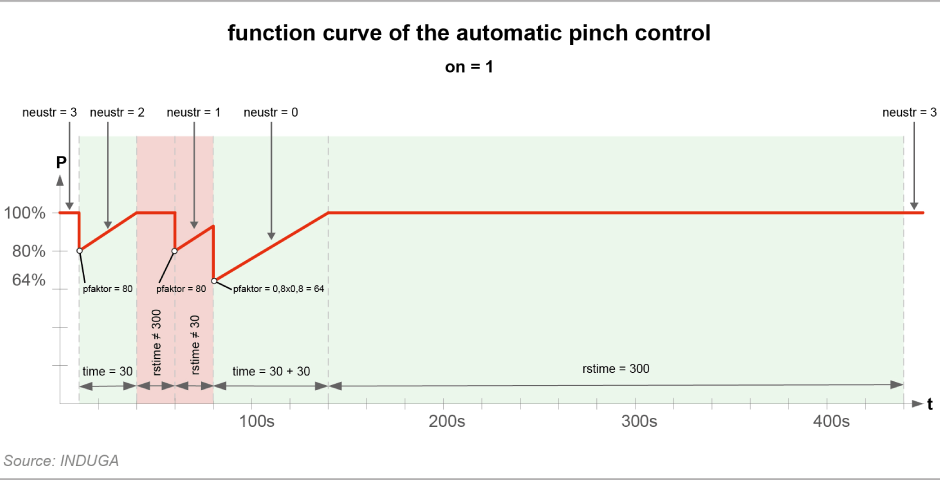 The IGBT converters used by Induga shall then switch to the “automatic pinching mode”. This means that the converter control system will automatically try to approach the highest possible power which, however, does not quite cause pinching again.