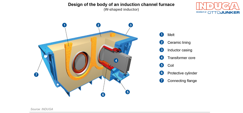 Since the heat is generated in the channel, it is very important to transfer a sufficient amount of this heat to the furnace vessel which is why it is vital to achieve high flow speeds in the inductor.