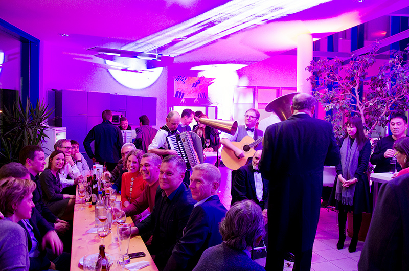 After the end of the lectures, the entertainment was far from over - after a small break, the legendary Kurtz Ersa staircase party, a catered affair at which a small seasonal orchestra played. After switching to a small cast with tuba, cajon, guitar and accordion, the four-piece ensemble even fit into the elevator and brought musical atmosphere to the upper floors.