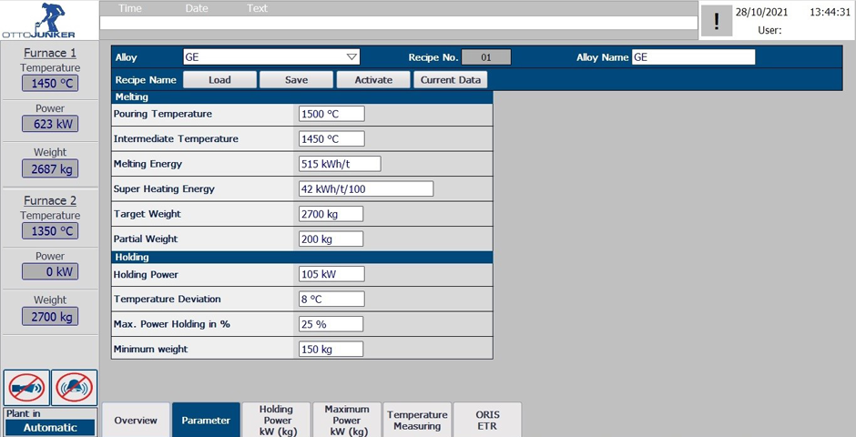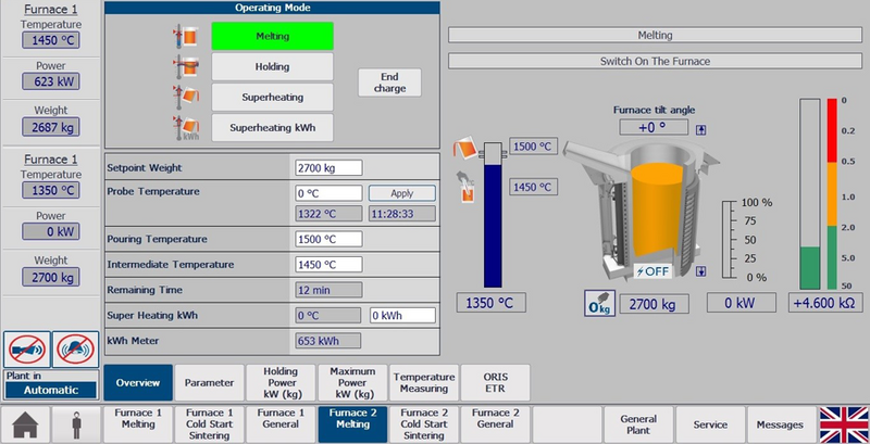 The same software that is used to operate the furnace can be extended to include such helpful modules as recipe management or process step confirmation. This allows individual goals to be pursued depending on the foundry process and melting task.