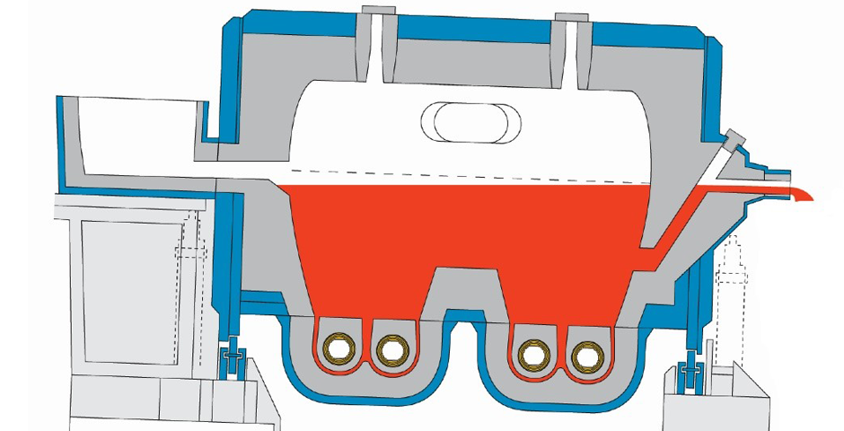 If the unit charge does not have a low tariff and the liquid metal demand is relatively constant, it is better to avoid installing additional holding furnaces where possible. For instance, a 60-tonne holding furnace for iron, designed as a channel-type induction furnace, has an annual energy demand of approx. 2 million kWh. Based on the example of 20 cents per kWh, this equates to energy costs of € 400,000 per annum.