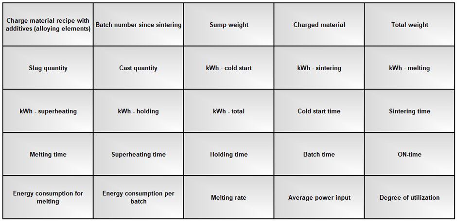 Modern induction furnaces have a PLC controller and a process computer that stores all important melting process data and assigns it to a specific batch. Complete batch documentation contains the following information (s. figure 5):