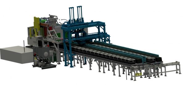 Maclean’s FBO-IIIS Molding Machine has a 20” x 24” x 8”/8” mold size, aeration technology and a core setter option. A custom Mold Handling System is paired with the FBO-IIIS. Together, the pair can produce molds at a rate of 150 per hour.
