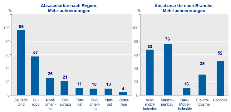 Fast alle Gießereien verkaufen Ihre Produkte in Deutschland, die Mehrzahl in Europa. 86% der Unternehmen erzielen ihren Hauptumsatz in Deutschland. Die wesentlichen Kundenbranchen, Automobilindustrie und Maschinenbau, sind in der Studie breit vertreten. <break></break>