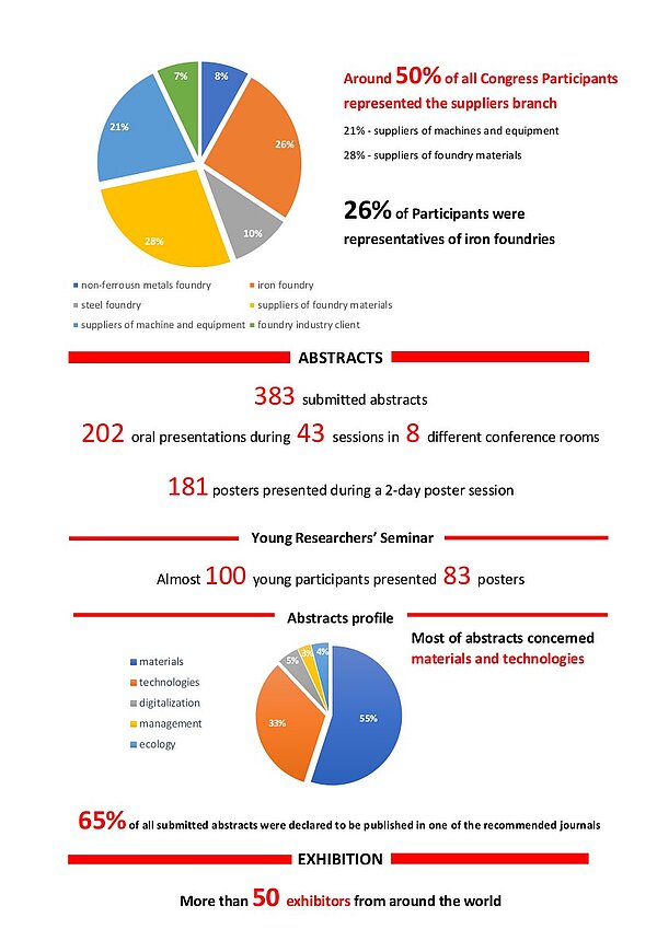 Now we would like to thank all authors for their scientific and technical contributions which guaranteed the high scientific and technical level of the event. We would like to thank all exhibitors who have created such an interesting exhibition under the motto “Creative Foundry”. What is more we would like to thank all the Congress participants and visitors, the popularity of the Congress shows how important and awaited this event has been.