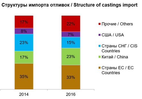 As far as cast imports are concerned, the numbers are still stable despite all the restrictions. In 2016, 33% came from the EU, followed by imports from China and the former states of the Soviet Union (CiS).