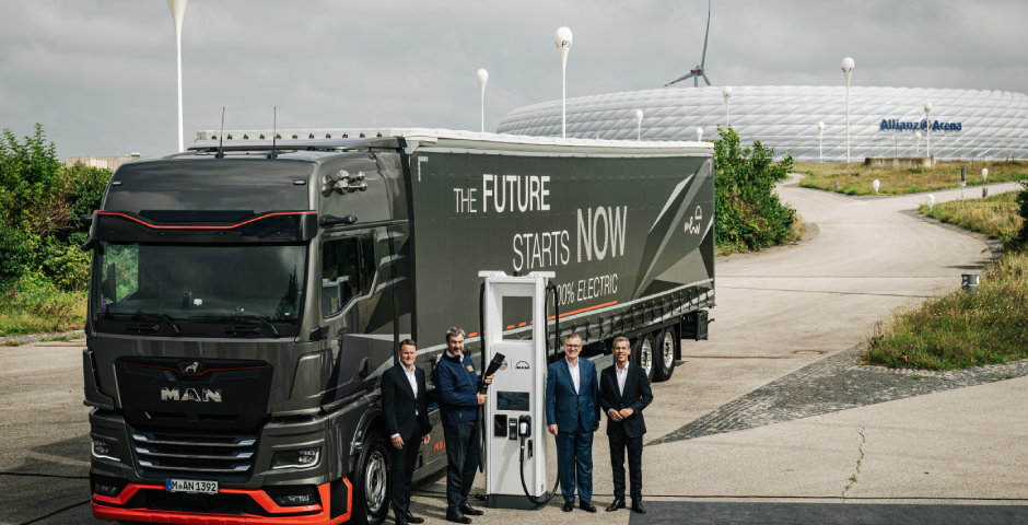 • Public megawatt charging station (MCS) at the Allianz Arena motorway hub for up to 500 electric trucks and buses a day