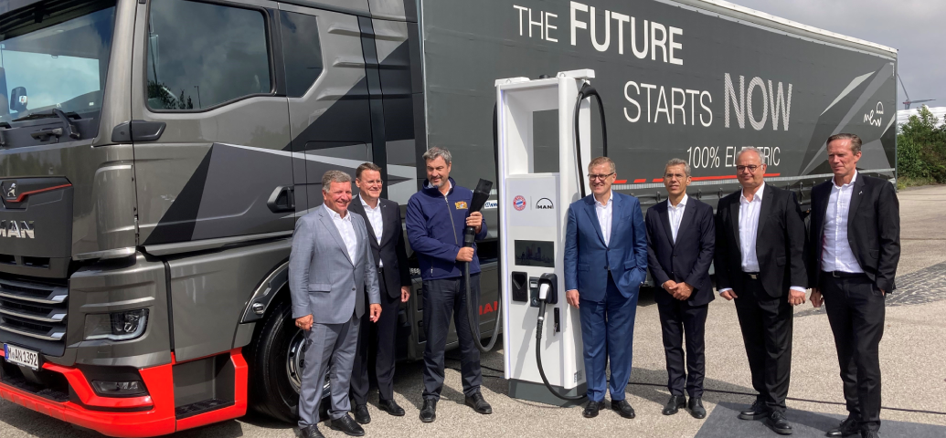 The official launch of the charging park project for electric lorries and buses took place today at the Allianz Arena in Munich. Dr Markus Söder, Bavarian Minister President, Christian Bernreiter, Bavarian State Minister for Housing, Construction and Transport, Jan-Christian Dreesen, CEO of FC Bayern München AG, Michael Diederich, Deputy CEO of FC Bayern München AG, Alexander Vlaskamp, CEO of MAN Truck & Bus, and Frederik Zohm, Chief Development Officer of MAN Truck & Bus, were all present. Highpower and megawatt charging points are to be built in three planned expansion stages on the southern bus car park of the Allianz Arena. A total of 30 charging points are planned. This will allow up to 500 electric buses and lorries to be charged every day.