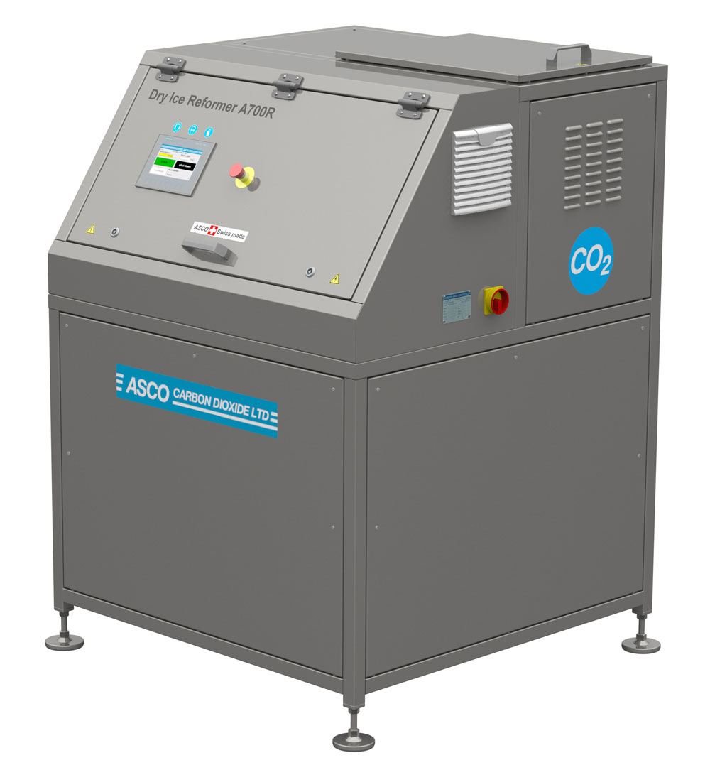 To satisfy growing customer needs in an even better way, ASCO CARBON DIOXIDE LTD enhanced its existing Dry Ice Reformer A600R radically and the result is impressive: The ASCO Dry Ice Reformer A700R sets new standards in terms of productivity and reliability in converting dry ice pellets into dry ice blocks.
