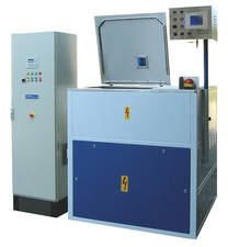Typically the vacuum system consists of a Roots-type pump with 800 m3/h and a corresponding backing – pump. This pumping station allows short evacuation times and guarantees the required vacuum during melting and casting. For working vacuum 5 x 10-2 mbar can be reached within 20 s, as maximum end vacuum in the chamber 10-3 mbar is possible. As rotary transmission feed through a specially designed model with solenoid fluid sealing systems is used that guarantees a high stability.