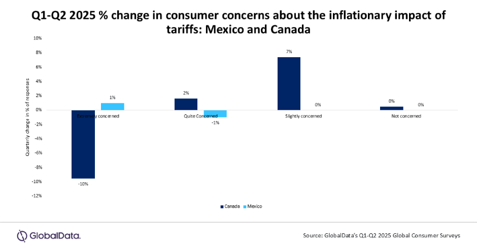 The exemption of USMCA-compliant goods was confirmed by the US when a raft of tariffs was announced in April 2025. This is likely to have contributed to concerns about tariffs’ inflationary impact not increasing significantly among Mexican consumers and decreasing noticeably among Canadian consumers between Q1 and Q2 2025 (according to GlobalData’s Q1 and Q2 2025 surveys). This reflects the positives that the exemption of USMCA-compliant goods could yield for the Canadian and Mexican economies.